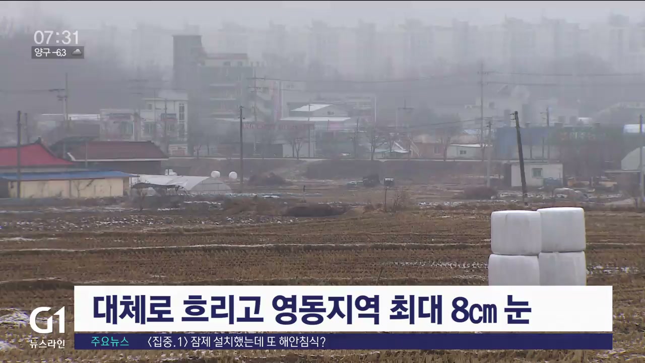 오늘 강원도는 대체로 흐린 가운데 영동지역에는 오후까지 눈이나 비가 내리겠습니다.