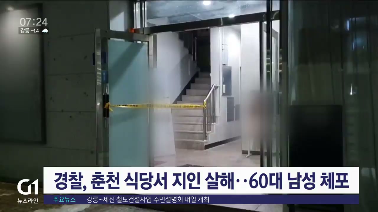 어젯밤(14일) 춘천 동내면 거두리의 한 식당에서 흉기를 휘둘러 지인을 살해한 60대 남성이 경찰에 붙잡혔습니다.