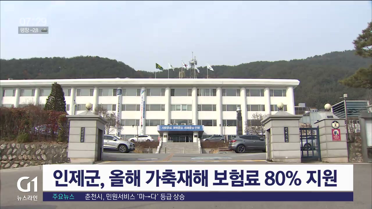 인제군이 자연재해로 피해를 입은 지역농가의 경영안정을 위해 가축재해 보험료의 80%를 지원하기로 했습니다.