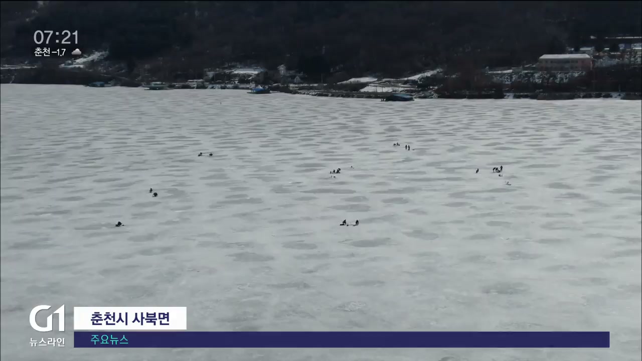 북한강 곳곳에서 얼음낚시가 한창입니다.