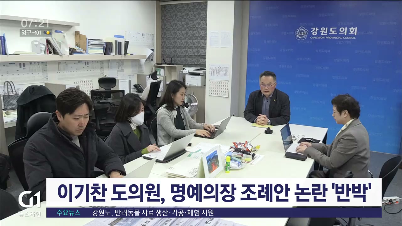 강원도의회에서 '명예의장' 도입을 둘러싸고 의원들간 이견이 나오면서 논란이 일고 있습니다.