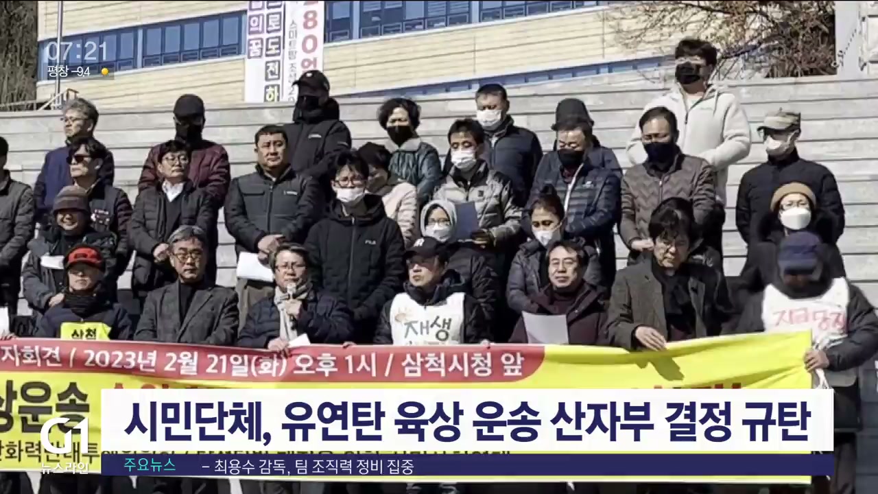 삼척석탄화력발전소의 유연탄 육상 운송 계획에 대해 정부가 주민 수용성 확보 방안 제출을 요구한 가운데, 시민단체 등이 다시 규탄하고 나섰습니다.