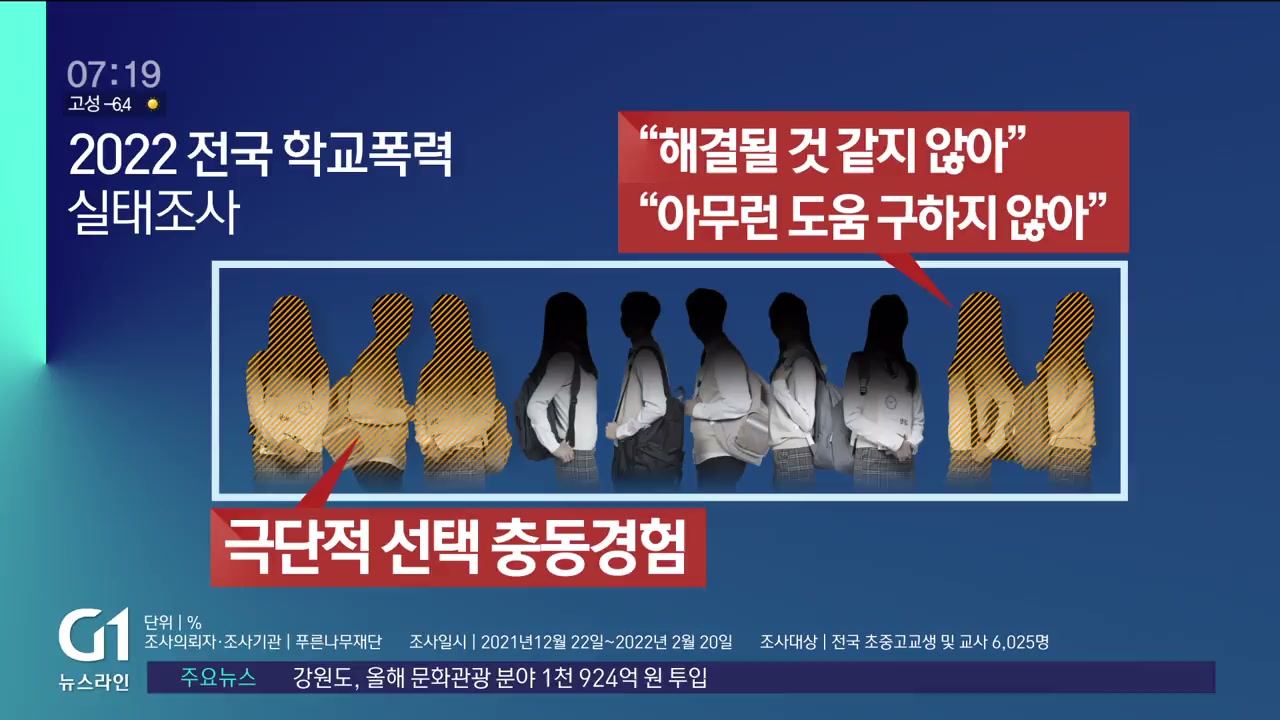 /한 통계에 따르면, 지난해 학교폭력 피해자 10명 중 3명은 극단적 선택 충동을 경험했고,