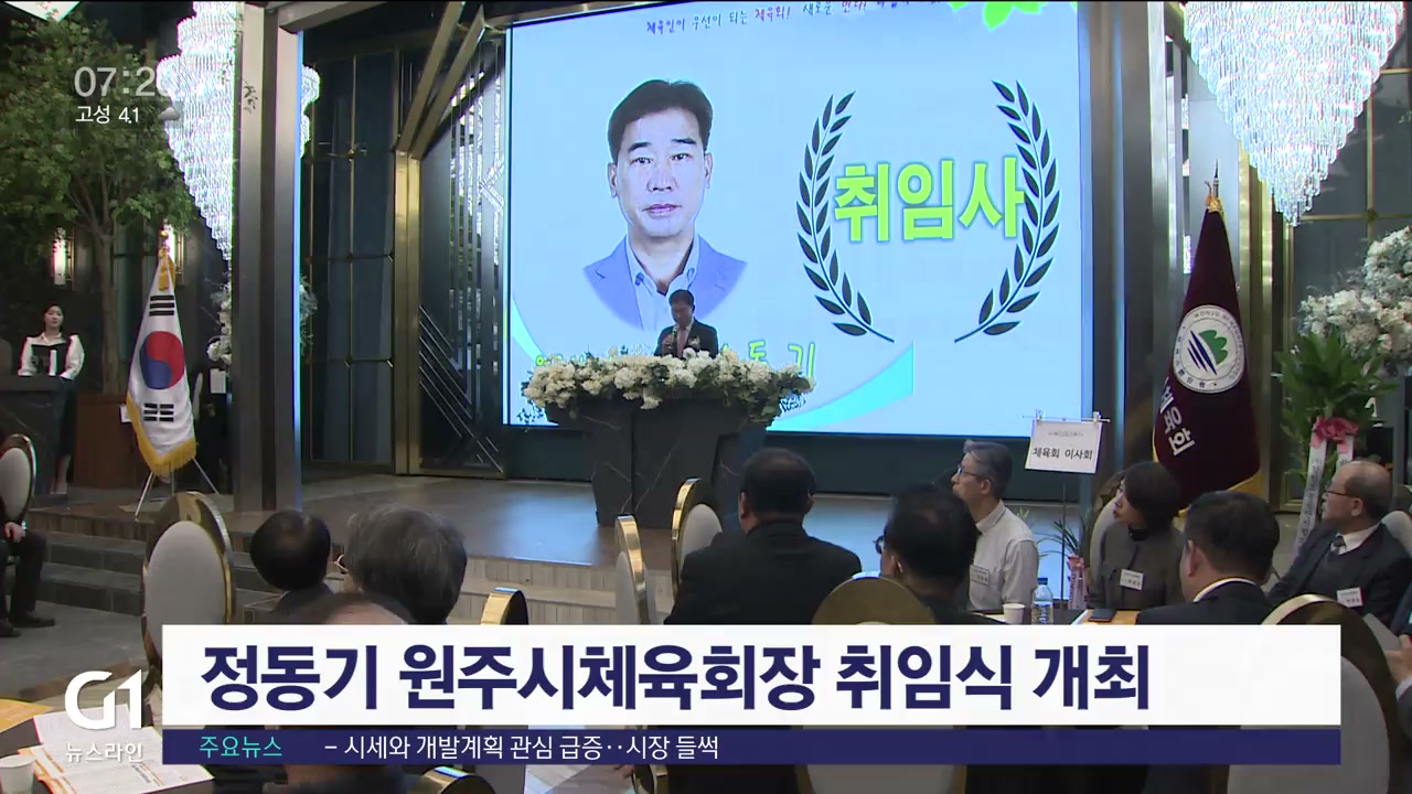 정동기 회장은 "원주시 체육회관 건립과 종목별 활성화 정책을 펼치겠다"며 원주시 체육회 운영계획을 밝혔습니다.