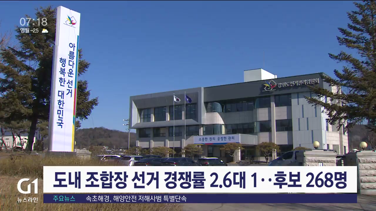 도내 조합장 선거 경쟁률 2.6대 1..후보 268명