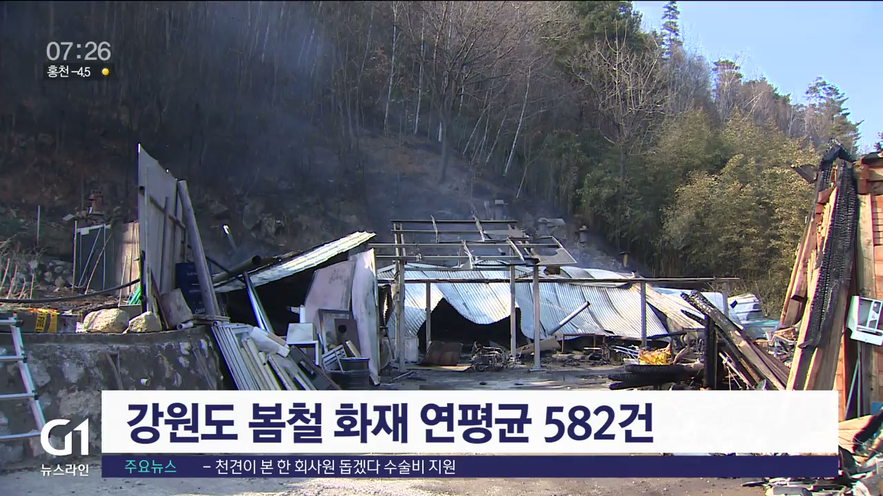 봄마다 바람이 강하게 불고 습도가 낮은 강원도에서 최근 5년간 봄철에 연평균 580여 건의 화재가 발생한 것으로 분석됐습니다.