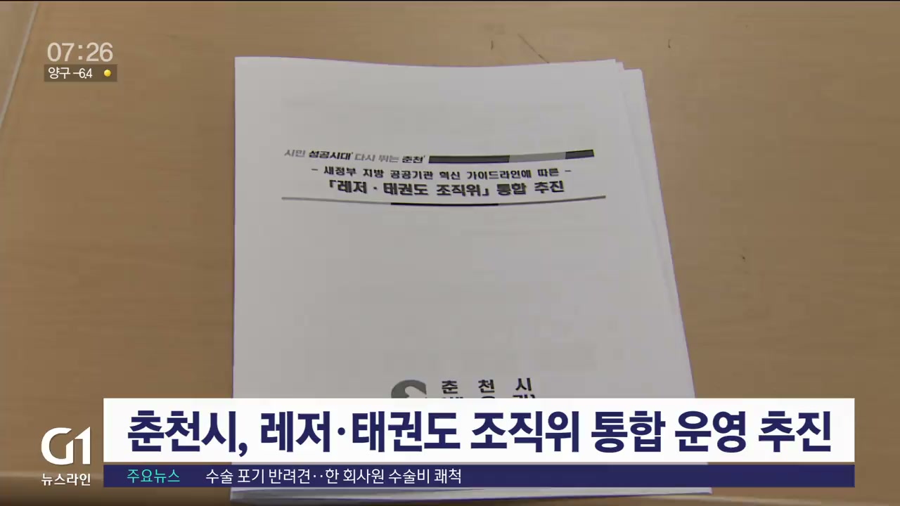 춘천시가 민선8기 주요 정책이던 조직 운영 효율화 방침에 따라 레저와 태권도 조직위원회 통합을 추진합니다.