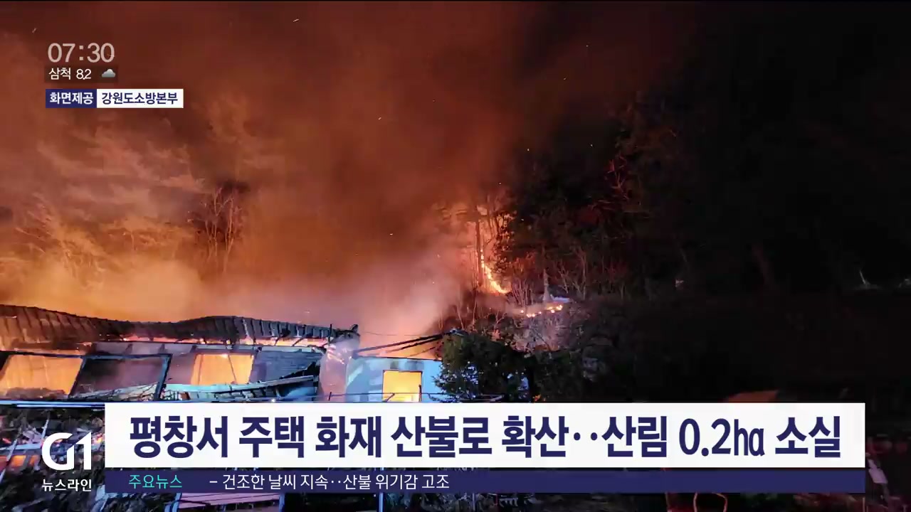 평창서 주택 화재 산불로 확산..산림 0.2ha 소실