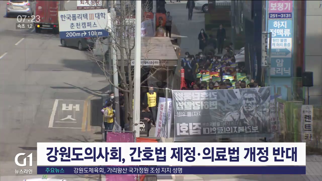 강원도의사회는 어제(16일) 더불어민주당 강원도당사 앞에서 집회를 열고 "더불어민주당은 보건의료 단체가 반대하는 간호법 제정안을 법제사법위원회를 거치지 않고 본회의로 직회부해 강행 처리했다"고 비판했습니다.