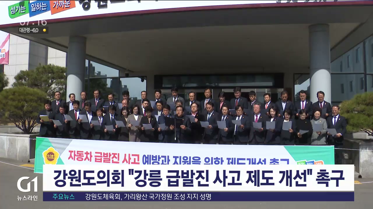 강원도의회가 지난해 강릉 차량 급발진 의심 사고와 관련해 사고 예방과 피해자 지원을 위한 제도 개선을 촉구했습니다.