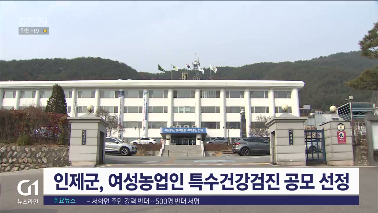 인제군이 농림축산식품부의 '여성농업인 특수건강검진 시범사업' 공모에 선정됐다고 밝혔습니다.
