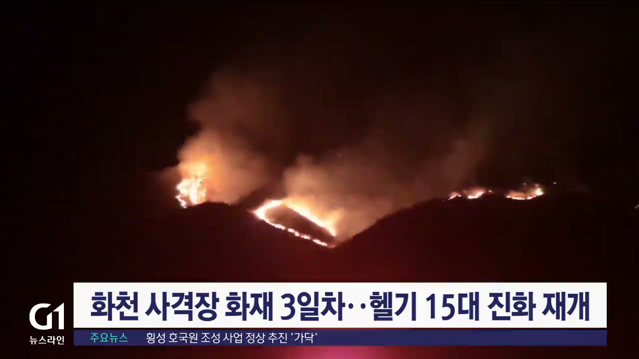 도 전역이 산불 비상인 가운데 화천에서 발생한 산불이 완전히 진화되지 않고 있습니다.