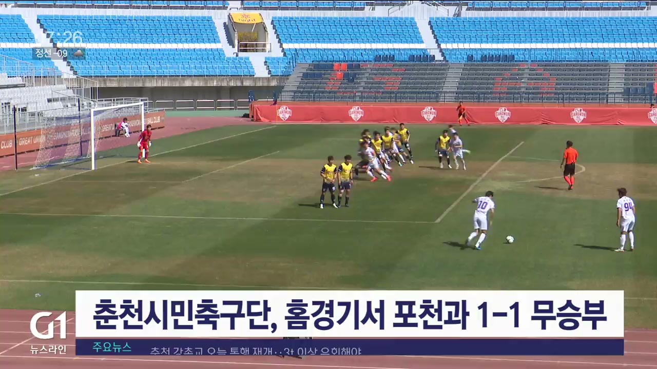 올해 K3 리그로 승격한 춘천시민축구단이 포천시민축구단과의 홈경기에서 아쉬운 무승부를 기록했습니다.