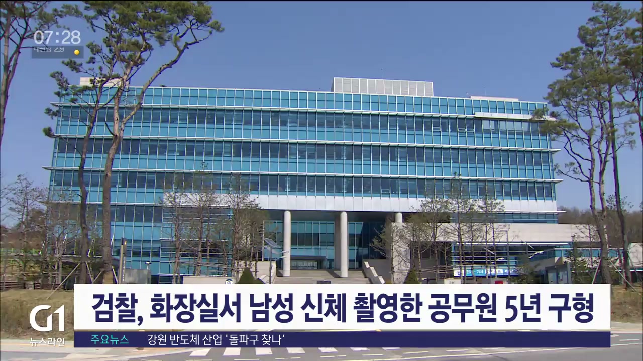 화장실에서 다른 남성의 신체를 수십 차례 촬영한 혐의로 기소된 공무원에게 검찰이 징역 5년을 구형했습니다.