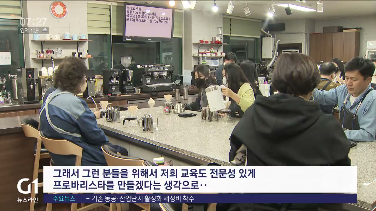 "강릉이 커피도시에 걸맞게 커피 관련해 전문화된 분들도 많고, 고객 분들 중에도 전문화된 분들이 많거든요. 그래서 그런 분들을 위해서 저희 교육도 전문성 있게 프로바리스타를 만들겠다는 생각으로.."