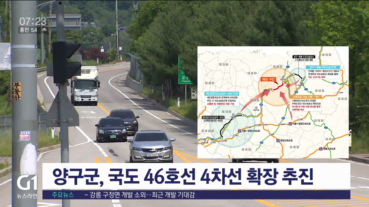 국도 46호선 춘천~양구 구간은 성수기와 주말마다 서울~양양 고속도로의 대체도로로 사용되면서 차량 혼잡도가 심한 구간으로 꼽힙니다.