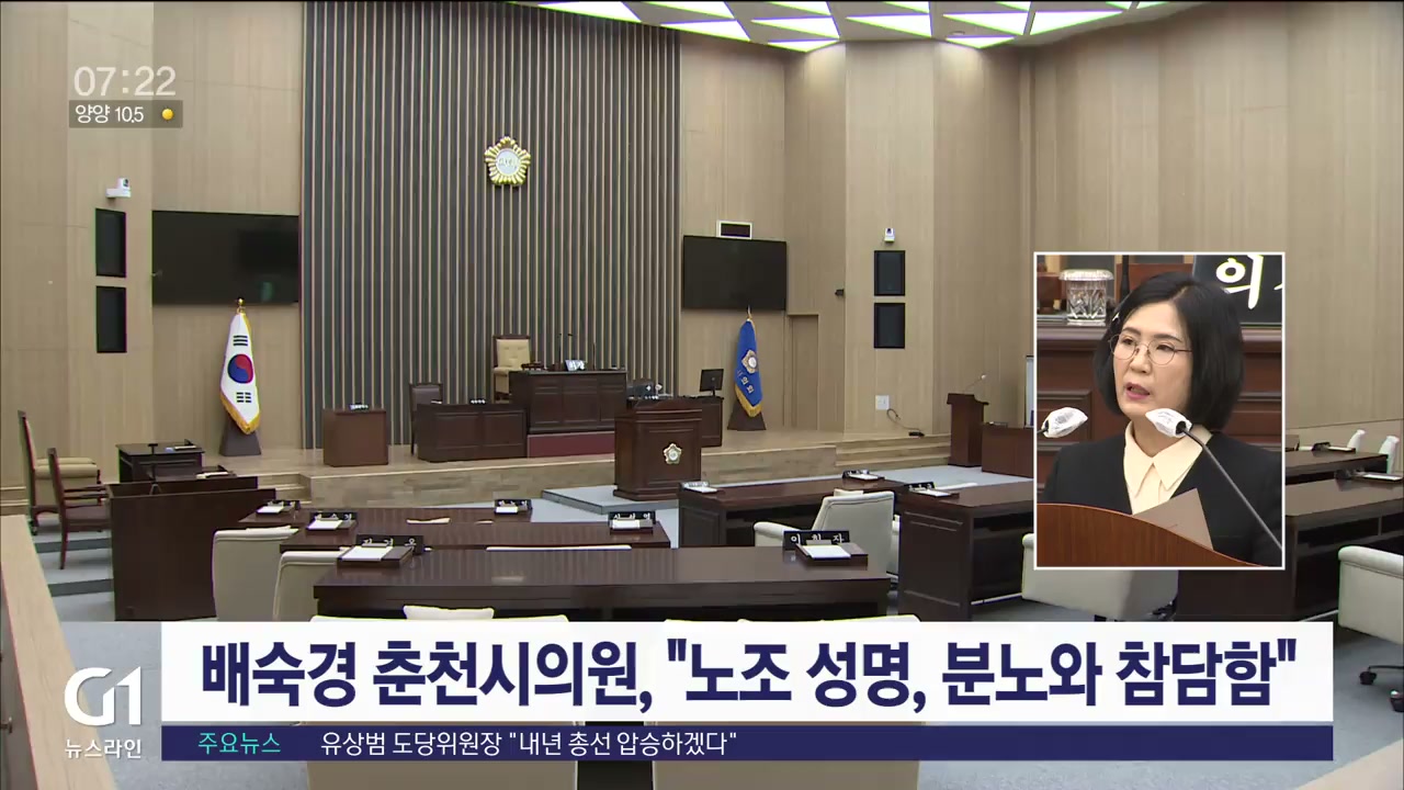 배숙경 춘천시의원, "노조 성명, 분노와 참담함 느껴"