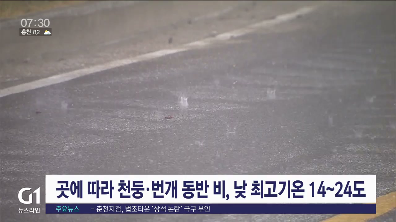 곳에따라 천둥·번개 동반 비, 낮 최고기온 14~24도