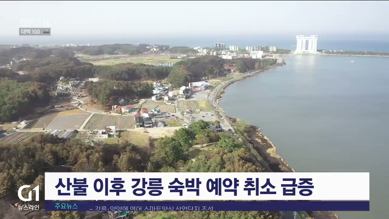강릉 숙박업계에 따르면, 산불이 난 지난 11일 이후 대형 호텔 객실 예약률이 평소보다 20% 가량 떨어지고, 예약 취소도 빗발치고 있습니다.