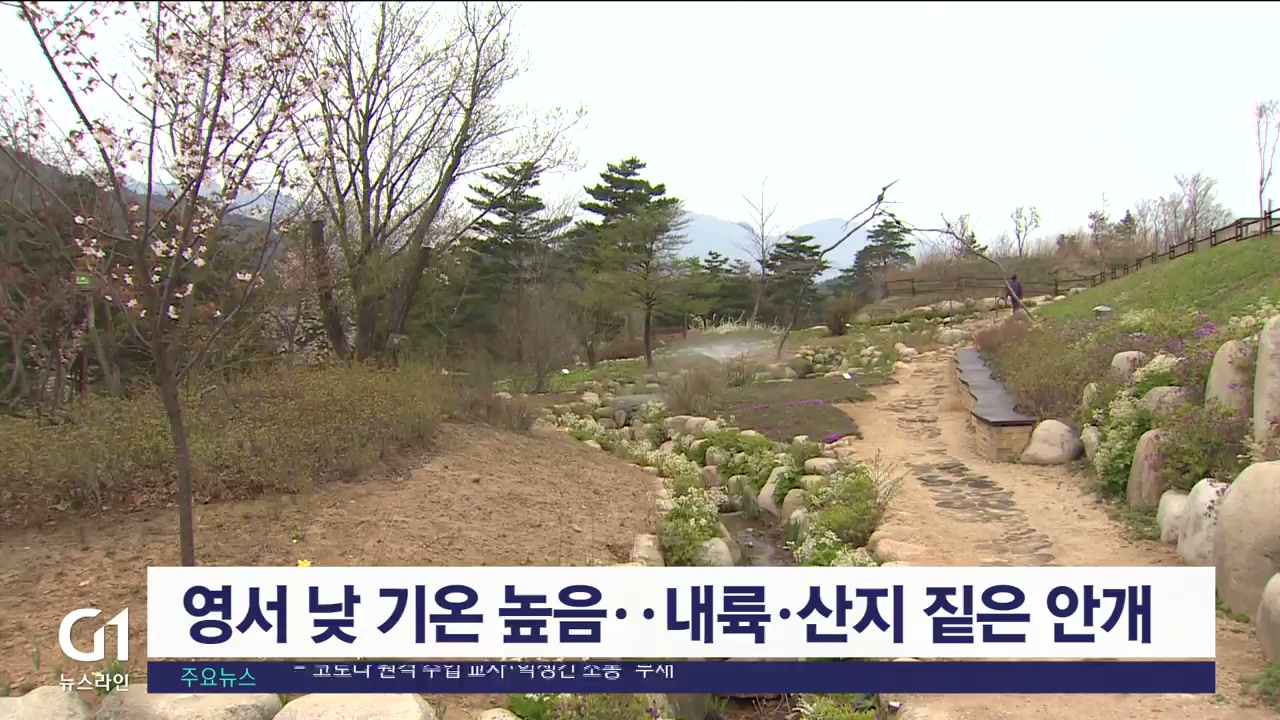 낮 최고기온은 영서지역이 영상 26도에서 28도, 산간지역은 영상 20도에서 22도, 영동지역은 영상 16도에서 21도의 분포를 보이겠습니다.
