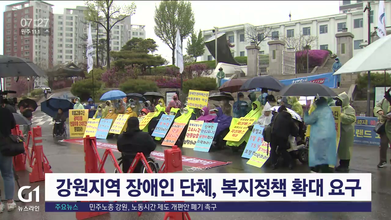 강원장애인차별철폐 공동투쟁단이 어제(18일) 출범식을 갖고, 장애인의 이동권 보장과 자립생활 지원 등 복지정책 확대를 요구했습니다.