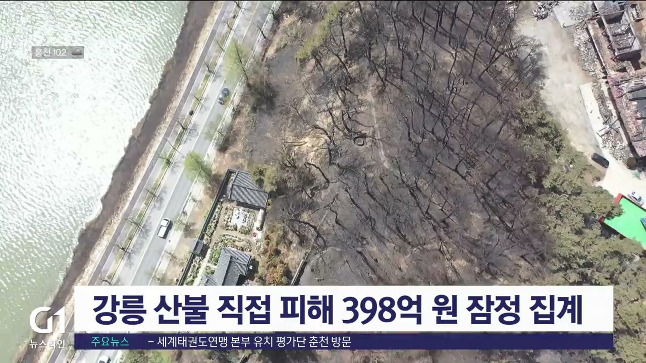 지난주 발생한 강릉 산불로 건물 소실 등 직접 피해만 400억 원, 간접 피해까지 더하면 1조 원에 육박할 것으로 보입니다.