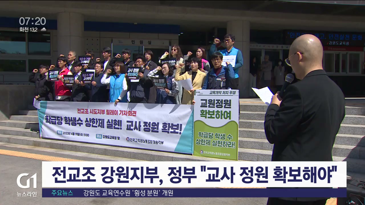 정부가 학령 인구 감소에 따른 교사 정원 축소를 검토하고 있는 것과 관련해, 전교조 강원지부가 도 교육청 앞에서 기자회견을 열고 우려를 나타냈습니다.