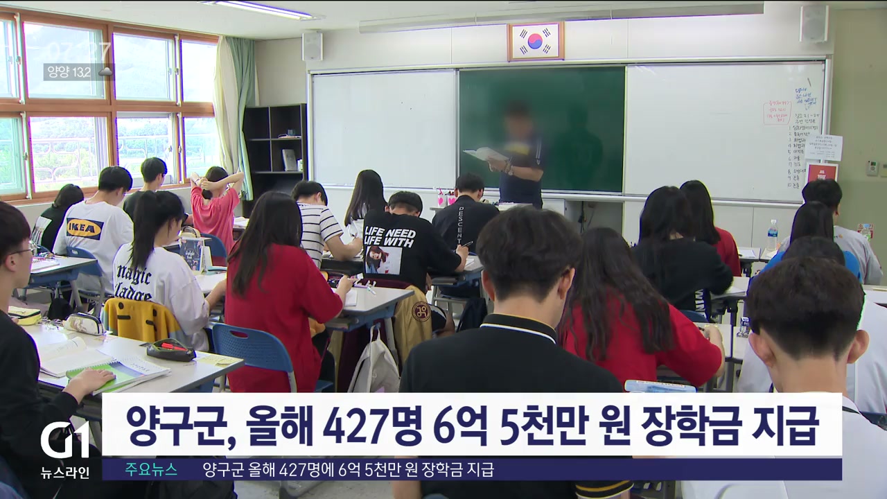 양구군 올해 427명에 6억5천만 원 장학금 지급