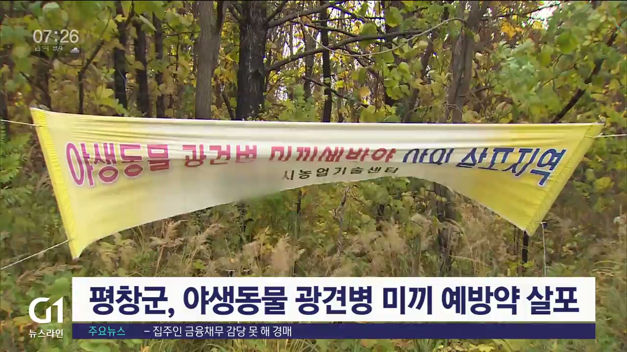 평창군은 오는 11월까지 '야생동물 광견병 미끼 예방약' 2만 7,360개를 봉평과 용평, 진부, 대관령 등 산림지역에 살포합니다.