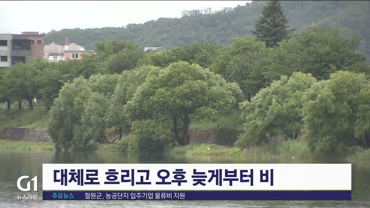 오늘 강원도는 대체로 흐린 가운데 오후 늦게부터 비가 오는 곳이 있겠습니다. 예상되는 비의 양은 5mm 내외입니다.
