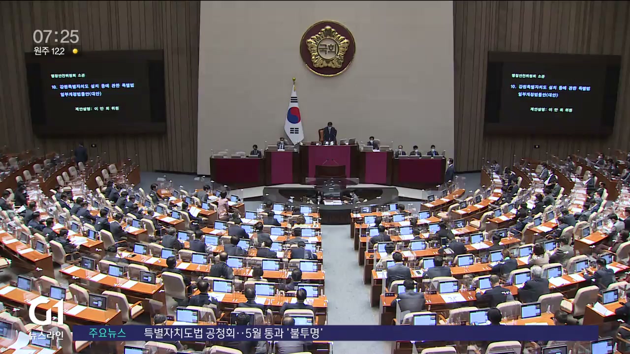 강원도의 희망대로, 다음 주에 행안위 법안심사 소위가 열리고, 그 직후에 행안위 전체회의까지 열려 대안 법안이 의결될 경우, 5월 국회 통과를 기대해 볼 수 있습니다.