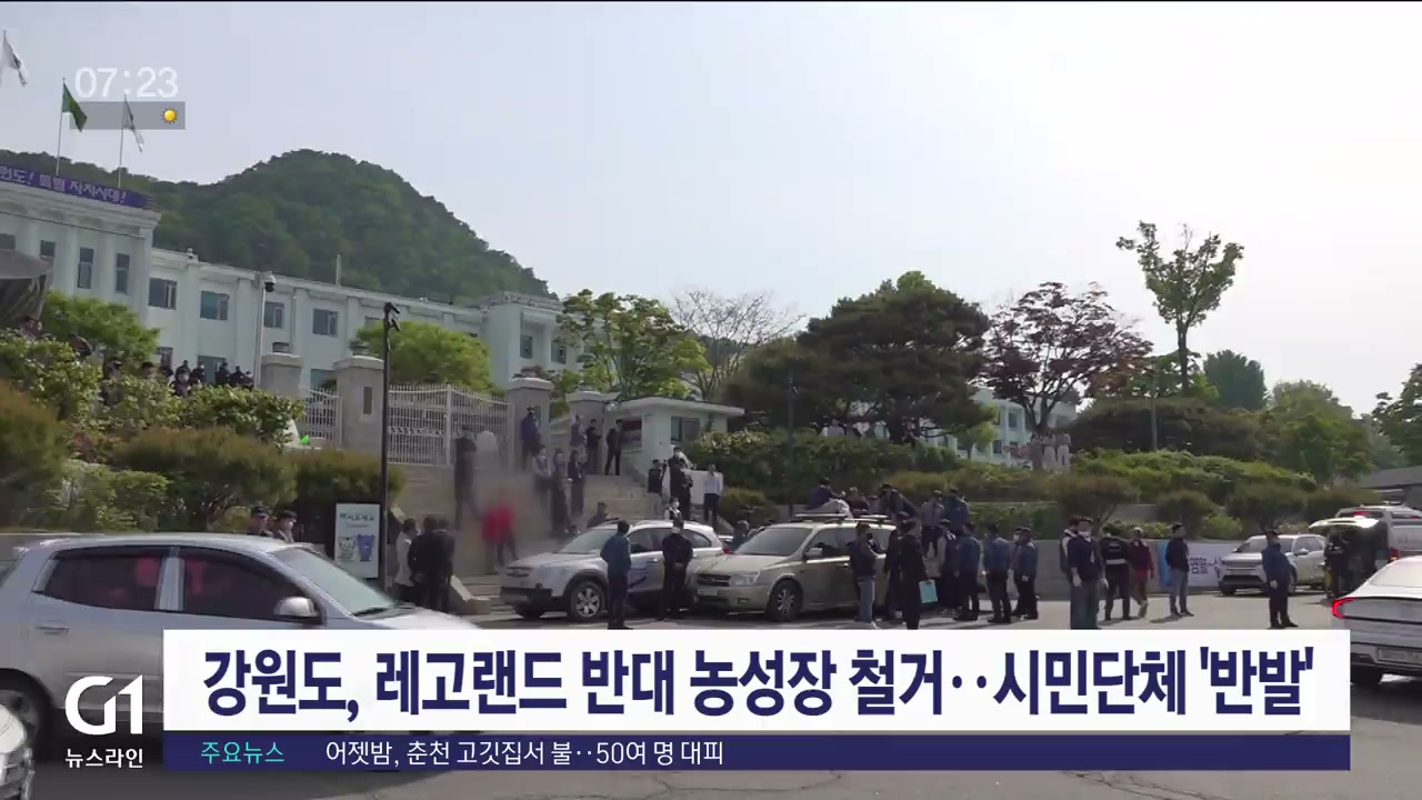 한편 이들 시민단체는 지난 2월부터 도청 앞에 천막과 차량 등을 설치하고 레고랜드 사업과 중도 내 문화재 훼손을 반대하는 집회를 벌여왔습니다.