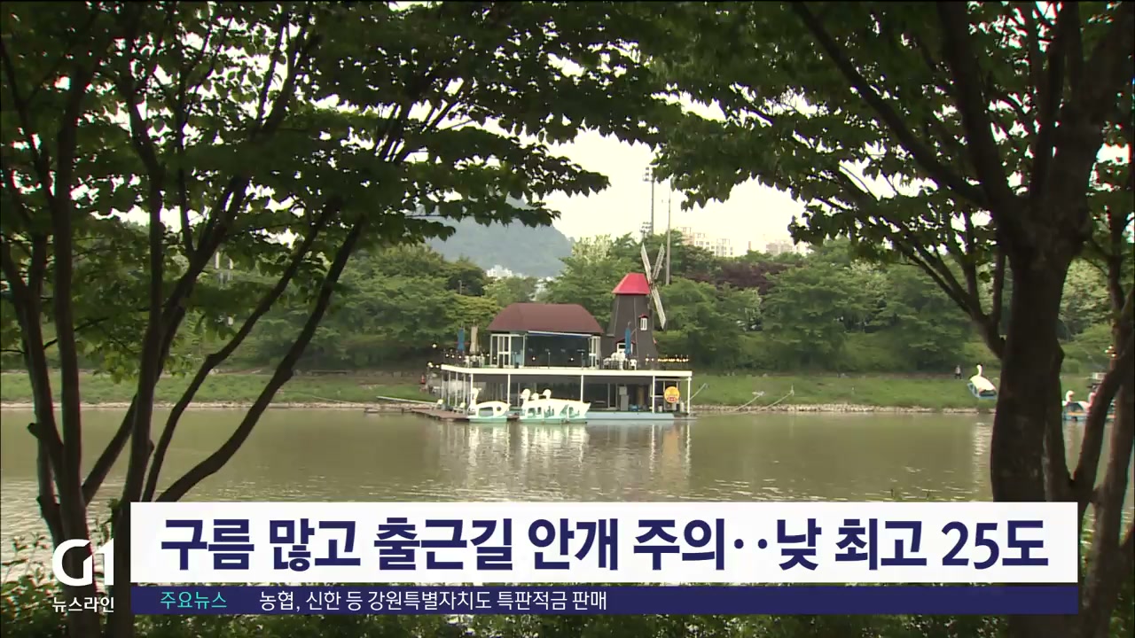 오늘 강원도는 구름이 많이 끼겠고, 산간지역을 중심으로 낮과 밤의 기온차가 크게 벌어지겠습니다.