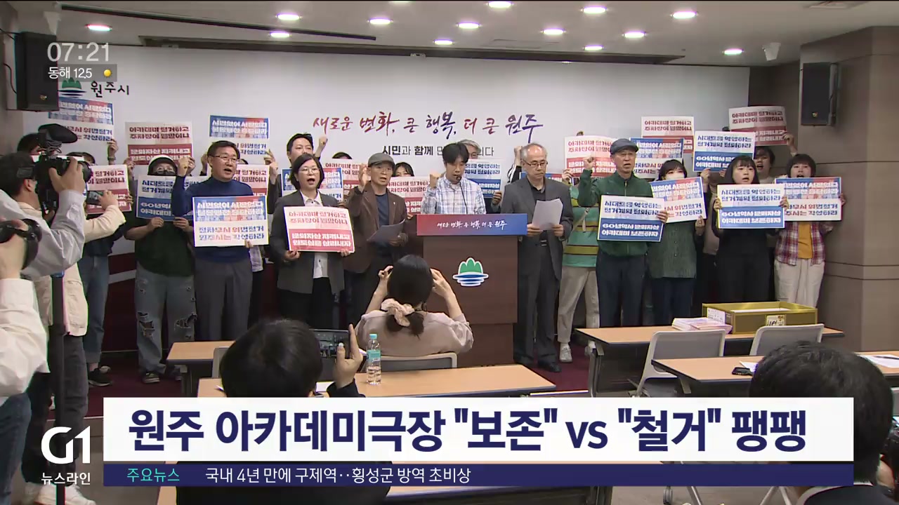 최근 원주 아카데미극장 철거 계획안이 시의회를 통과한 가운데, 보존과 철거를 둘러싼 지역 갈등이 지속되고 있습니다.