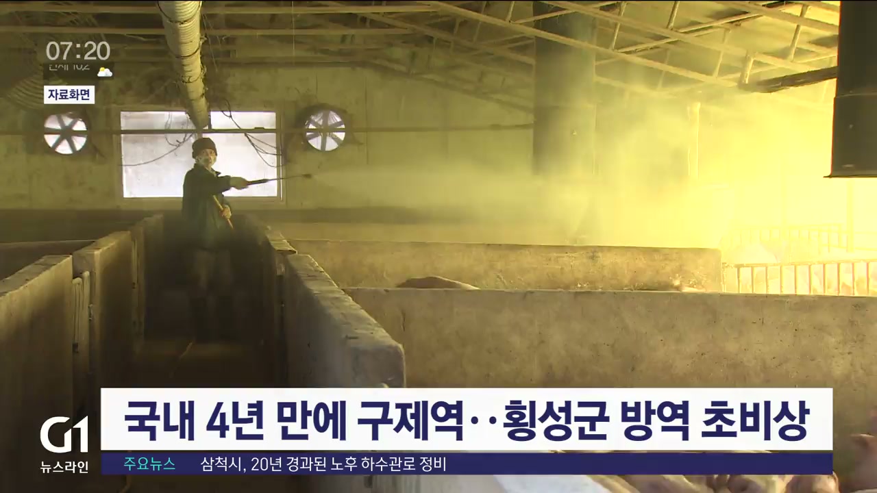 국내에서 4년여 만에 강원도와 인접한 충북 청주시의 축산 농가 3곳에서 잇따라 구제역이 발병함에 따라 횡성군이 긴급 예방 조치에 나섰습니다.