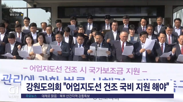 강원도의회가 어업지도선 건조 시 국가 예산을 지원받을 수 있도록 하는 내용의 '보조금 관리에 관한 법률 시행령' 개정을 촉구하고 나섰습니다.