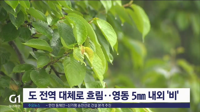 도 전역 대체로 흐림..영동 5㎜ 내외 '비'