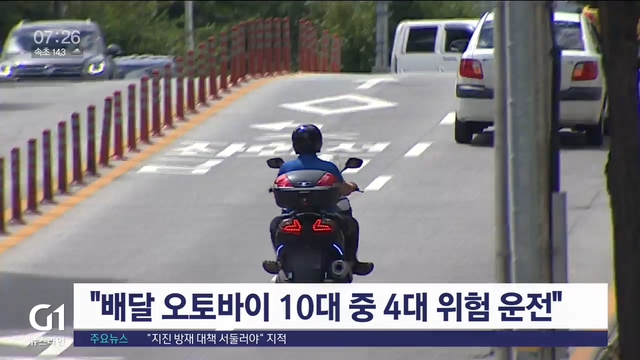배달오토바이 10대 중 4대가 위험운전 행동을 하는 것으로 조사됐습니다.