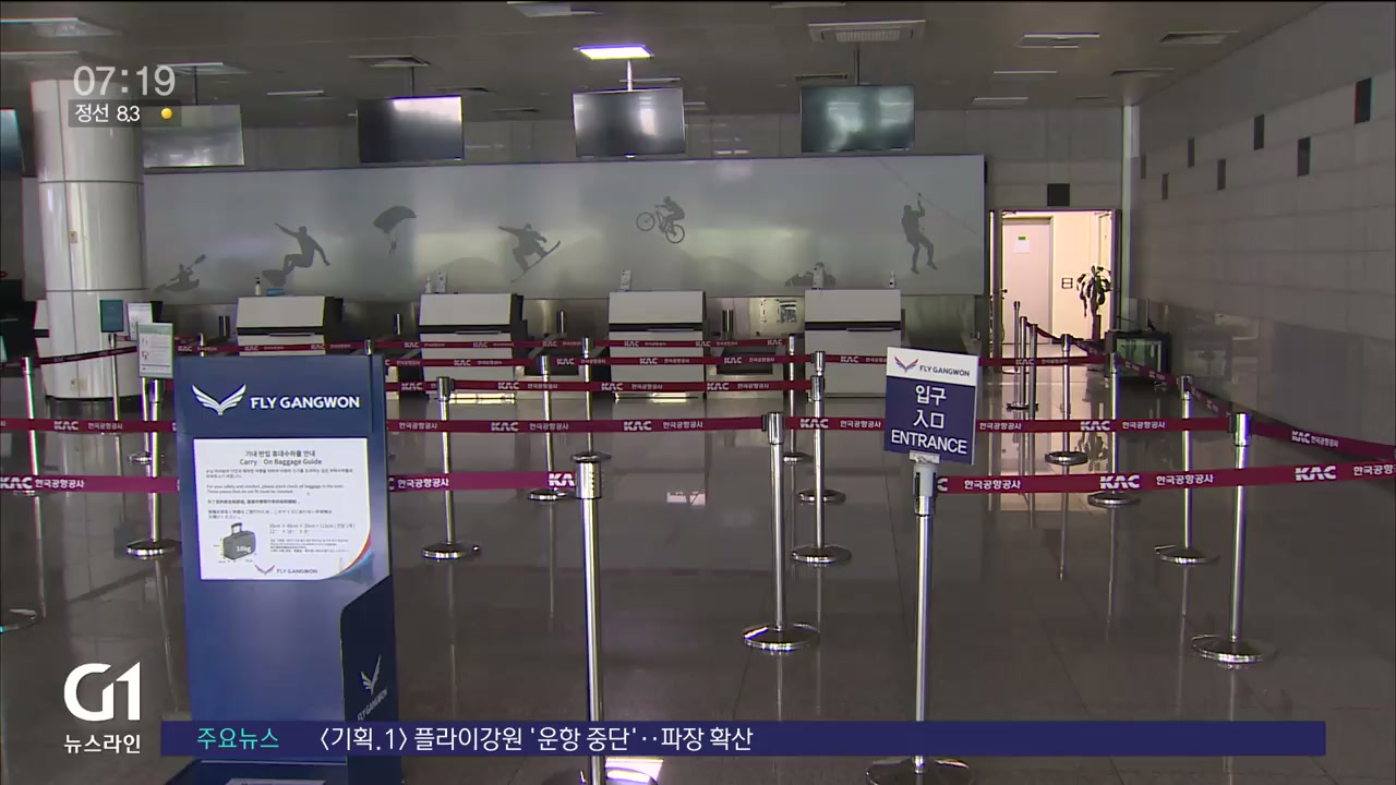 지난 2019년 강원의 첫 하늘길을 연 플라이강원이 국제선에 이어 지난 주말 국내선 운항마저 중단하면서 빚어진 상황입니다.