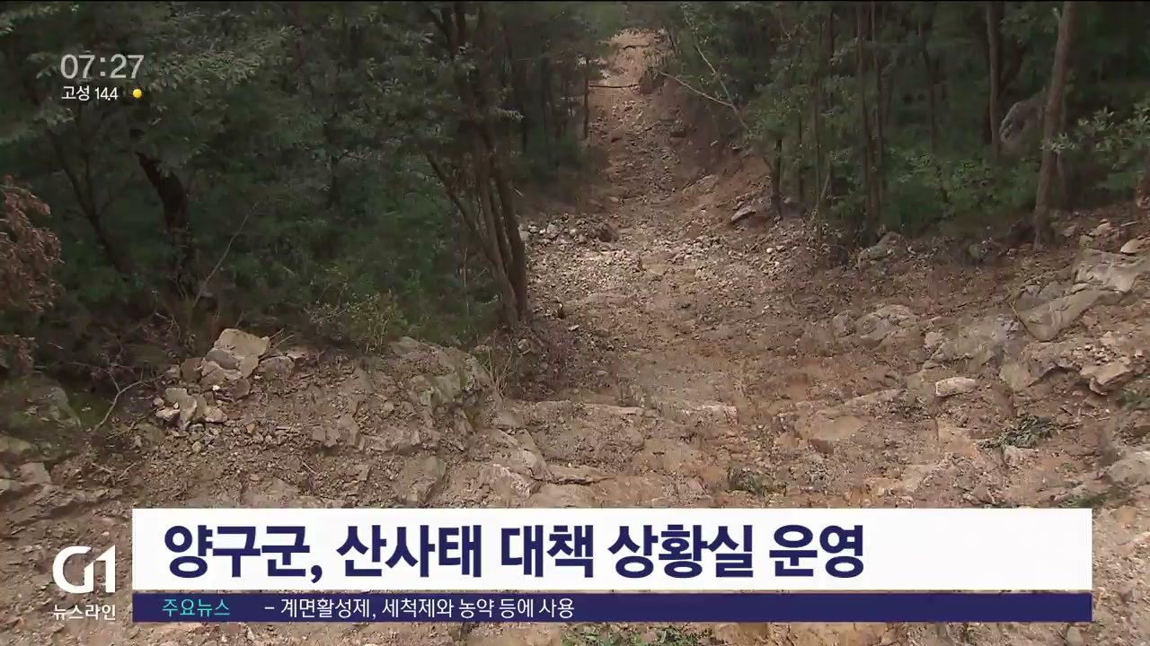 양구군이 태풍과 집중호우로 발생하는 산사태 피해 예방을 위해 오는 10월 15일까지 종합상황실을 운영합니다.