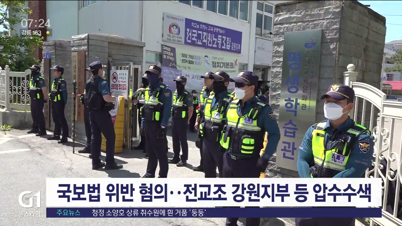 국정원과 경찰이 어제(23일) 국가보안법 위반 혐의로 전국교직원노동조합 강원지부 사무실 등에 대한 압수수색에 나섰습니다.