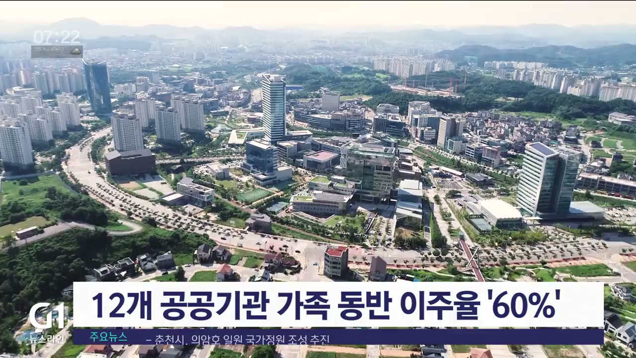 원주 혁신도시 12개 공공기관의 가족동반 이주율은 60%.