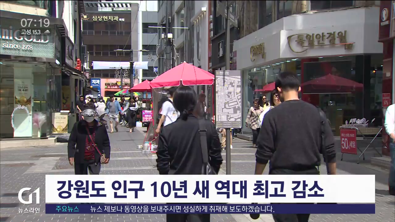 강원도 인구가 최근 10년 동안 역대 최고로 감소한 것으로 나타났습니다.