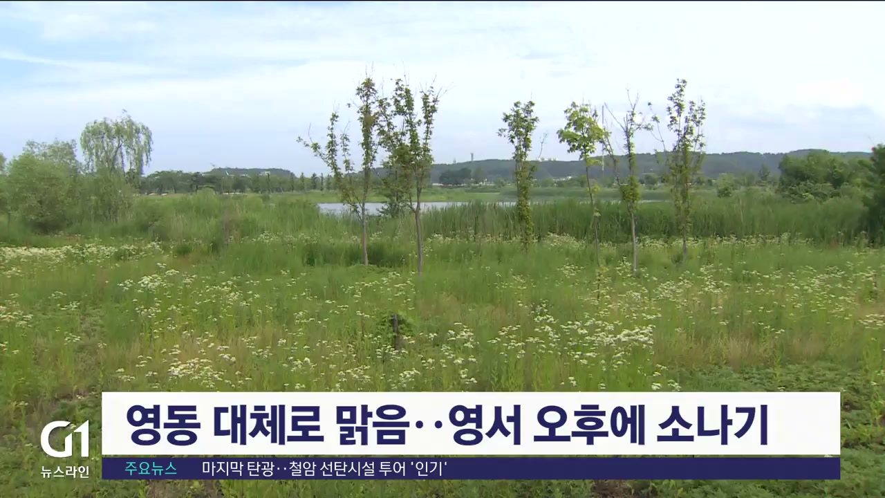 낮 최고기온은 영서 26도에서 27도, 영동 26도에서 29도의 분포를 보이겠습니다.