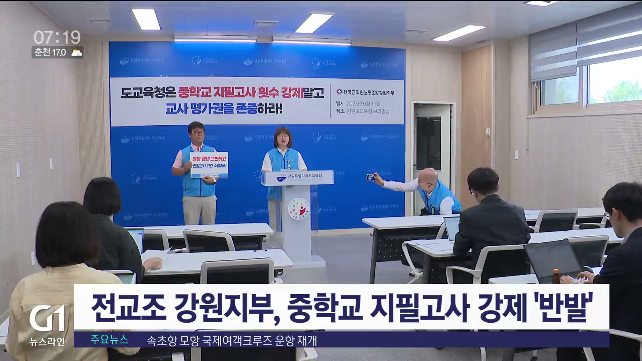 강원특별자치도 교육청이 지난 4월 중학교 지필고사를 연 2회 이상 추진하기로 한 것과 관련해, 전교조 강원지부가 기자회견을 열고 반발하고 나섰습니다.
