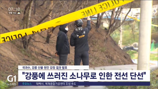 감정 결과는 강풍에 쓰러진 소나무로 인한 전선 단선.