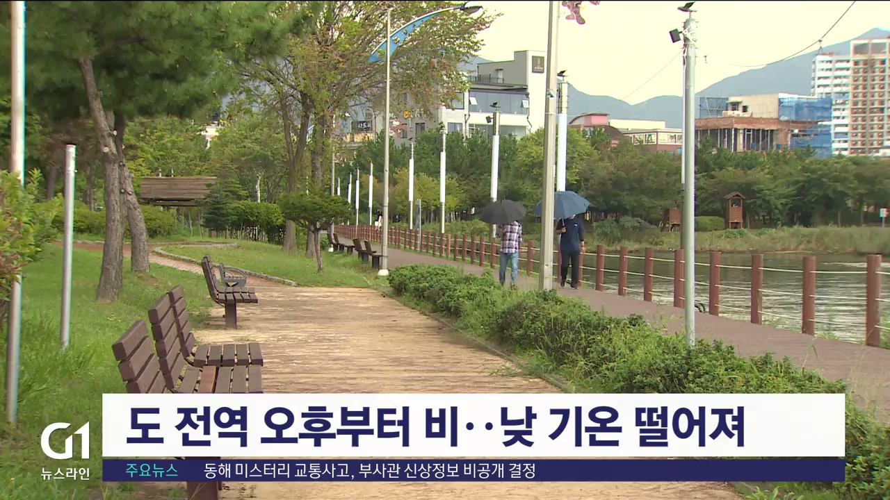 낮 최고기온은 영서 27도에서 28도, 영동 22도에서 25도로 전날보다 2도에서 5도 가량 낮겠습니다.