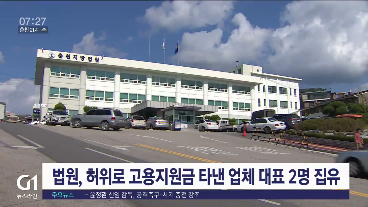 춘천지법 형사1단독 송종선 부장판사는 고용보험법 위반 혐의로 기소된 업체 대표 2명에게 각각 징역 8개월과 10개월에 집행유예 2년을 선고했습니다.