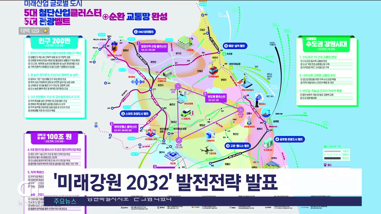 '미래 강원 2032'는 특별법에 따라 내년 6월 법정계획으로 수립될 '미래산업 글로벌 도시 종합계획'의 기본 정책 방향과 전략으로 활용됩니다. G1뉴스 정동원입니다.