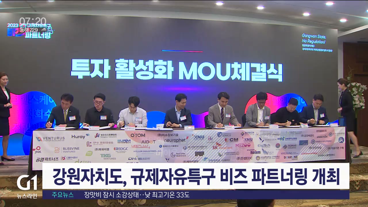 강원특별자치도가 중소벤처기업부와 함께 춘천 ORA(오라) 호텔베어스에서 '2023 규제자유특구 비즈 파트너링' 행사를 열었습니다.